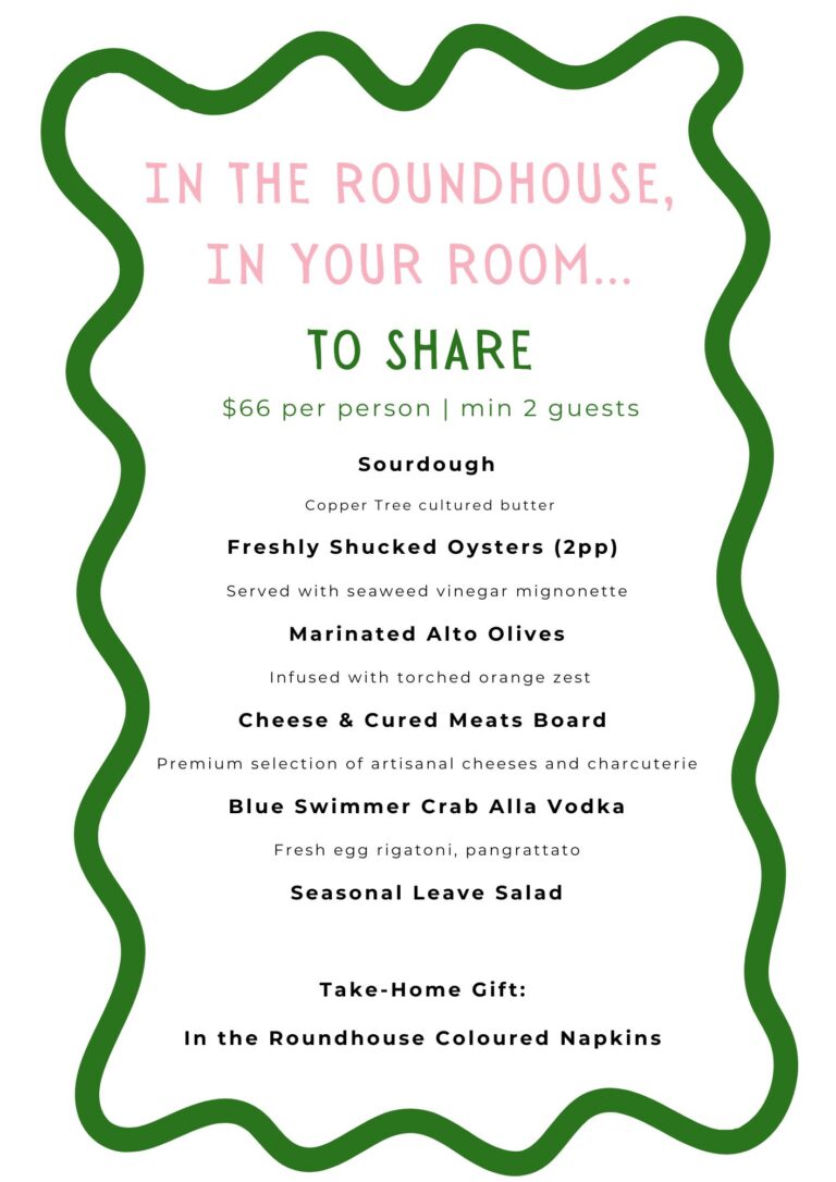 Experience the coolest in-room dining at Pier One Sydney Harbour, in collaboration with In The Roundhouse. Our dishes come with mandatory bright colors and perfect plating, designed for your social feed first and your stomach second (but don’t worry, they actually taste amazing too).