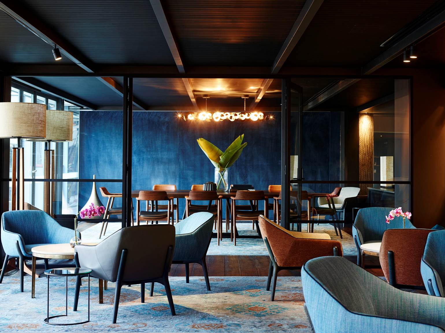 An idyllic naturally lit function room with wraparound glass windows looking out onto Walsh Bay and Sydney Harbour. Its open-plan layout allows you to play with different table and dance floor configurations. It’s a bright modern space on the waterfront that suits up to 180 seated or 350 for a standing cocktail reception.